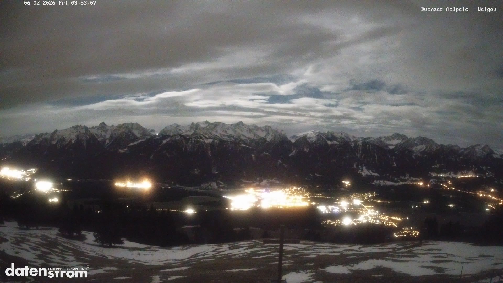 Stark bewölkt, teils noch wenige Tropfen/Flocken. Im Bereich westlich des Gardasees +/- aufgelockert.