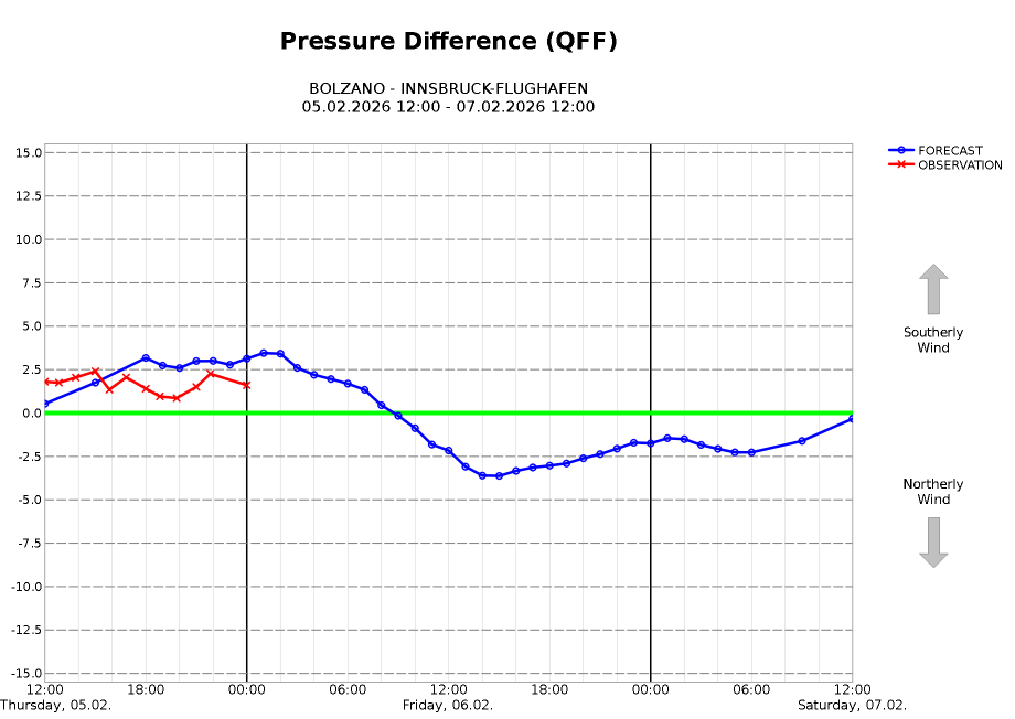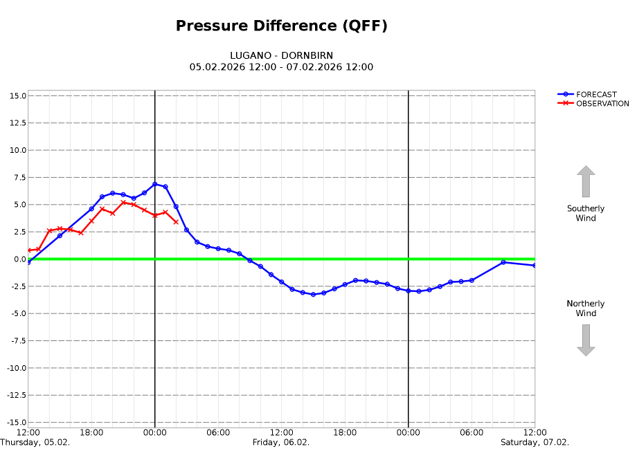 Wind: Am Nordalpenrand Mäßiger Ost-Wind, inneralpin etwas auflebender und föhniger Südwind.