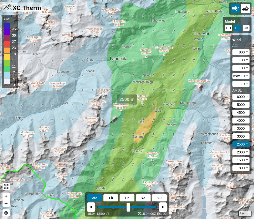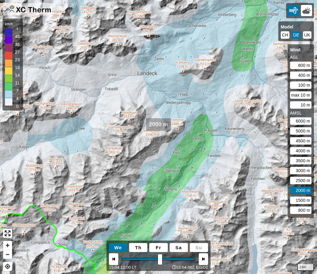 Thermik: Im Tagesverlauf oft mäßige Thermik, zeitweise bis um 1400mNN (deutlich +/- je Einstrahlung).